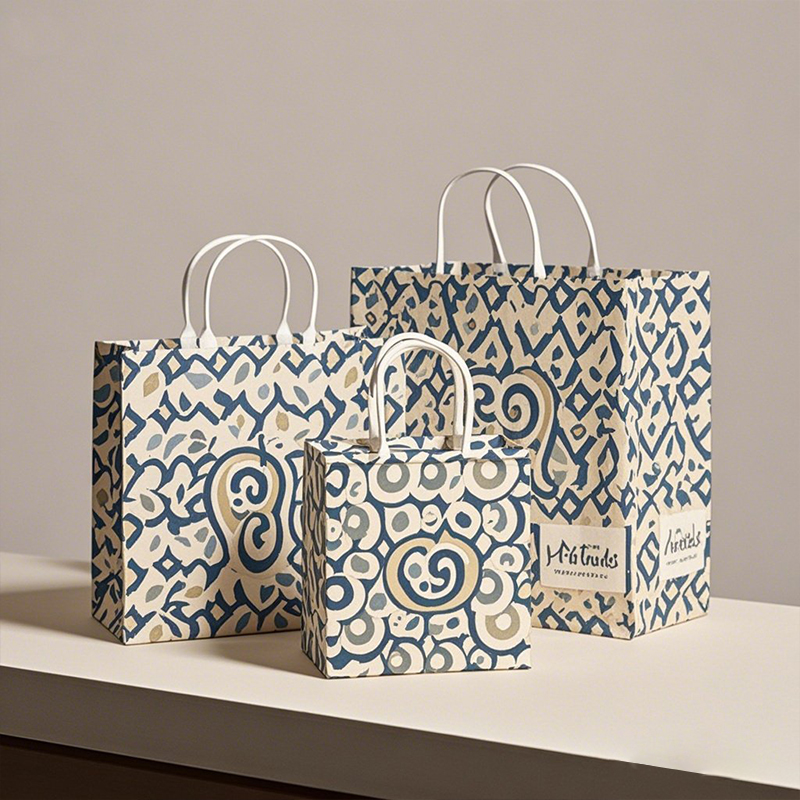 Luxo Ribbon Handle Boutique Compras Embalagem Cartão Branco Saco De Compras Impresso com Seu Próprio Logotipo