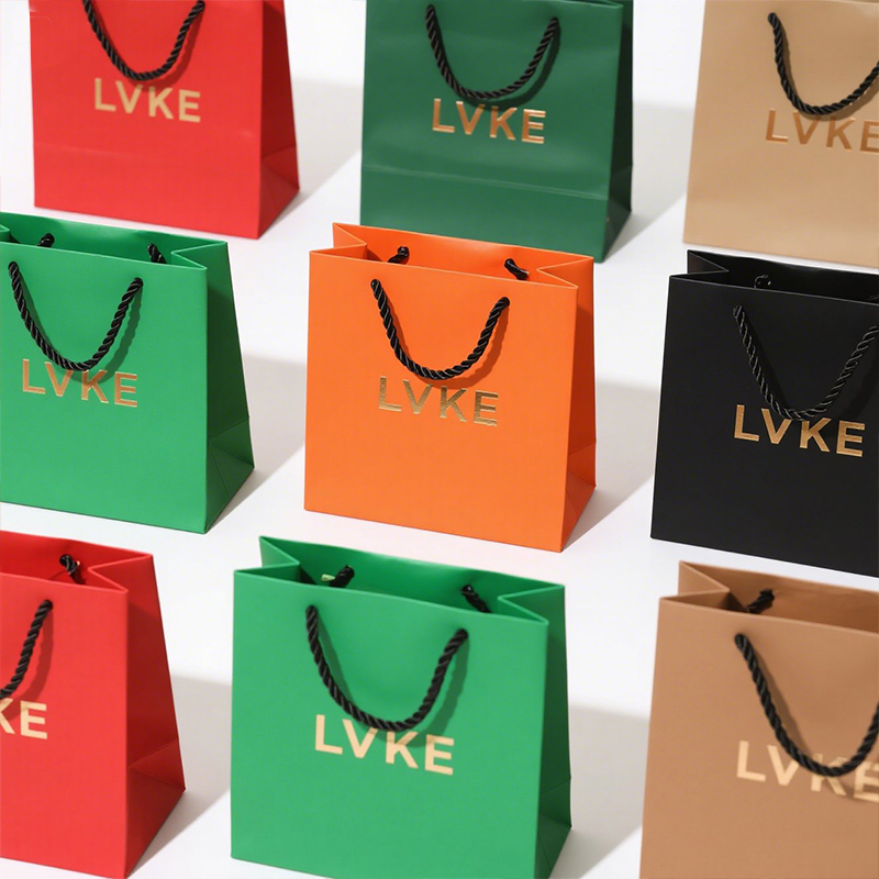Impressão De Logotipo Personalizado Luxo Hot Stamping Paper Gift Bag Embalagem Sacos De Compras com Seu Próprio Logotipo para Presentes Homens Mulheres Vestuário